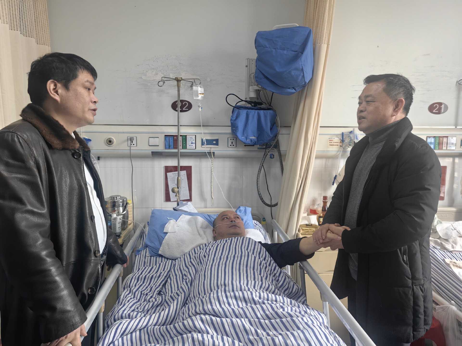 在醫(yī)院,王偉華親切地與住院職工及其家屬交談,詳細了解其病情和治療情況,鼓勵他一定要保持良好心態(tài),積極配合醫(yī)生做好治療,爭取早日康復。同時,對他在崗位上作出的貢獻和努力表示肯定。住院職工由衷感謝組織的慰問和牽掛,并表示會好好調(diào)養(yǎng)身體,早日康復出院。