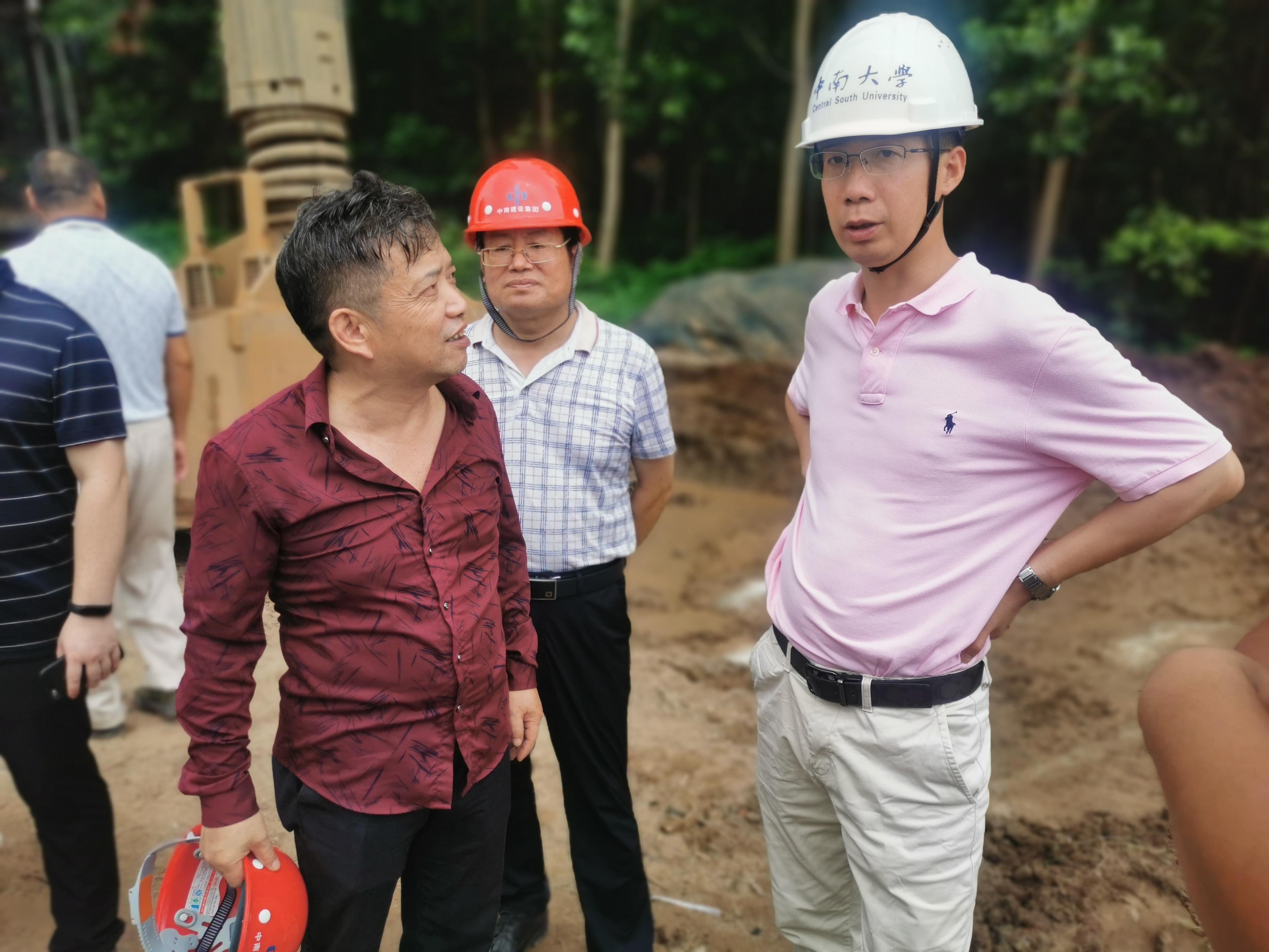 項目實施期間,中南大學地質(zhì)工程系主任孫平賀、公司盛漢洋及有關(guān)科研人員深入現(xiàn)場,重點查看了旋挖鉆機和泥漿攪拌機等設(shè)備的運行狀況及泥漿配比的落實情況,孫平賀針對旋挖鉆機在超深大直徑復雜地層的地質(zhì)狀況,就泥漿配比如何操作等問題提出了建設(shè)性的建議。