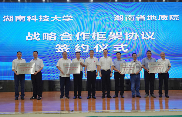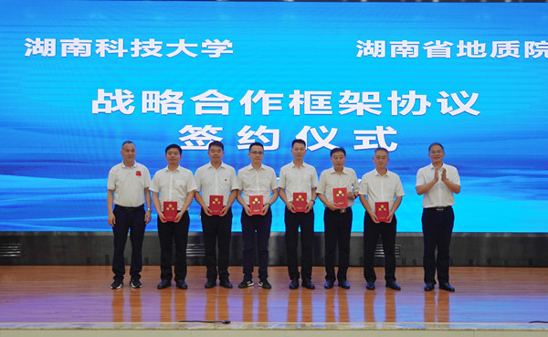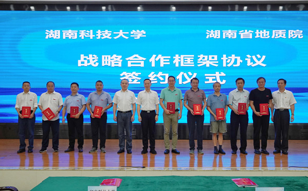湖南科技大學(xué)相關(guān)部門負(fù)責(zé)人,省地質(zhì)院相關(guān)部室及省地調(diào)所、地災(zāi)所、礦調(diào)所、物化所、地信所等負(fù)責(zé)人參加簽約儀式。(轉(zhuǎn)載自湖南省地質(zhì)院)