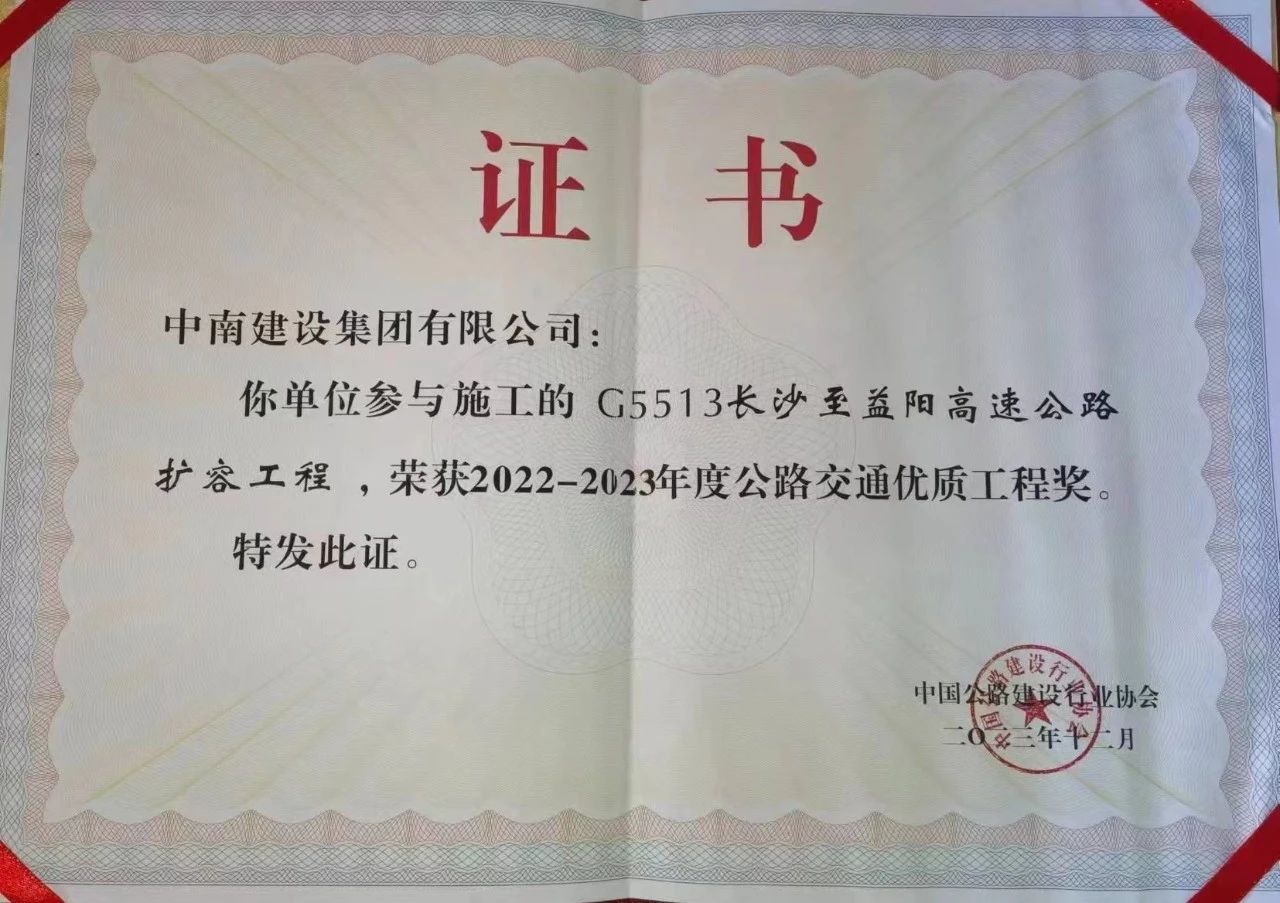 1月13日,第五屆公路建設(shè)高質(zhì)量大會暨2022-2023年度公路交通優(yōu)質(zhì)工程獎表彰大會在武漢隆重舉行。會議對2022—2023年度公路交通優(yōu)質(zhì)工程獎(“李春獎”)進行了表彰,中南建設(shè)集團承建的龍井至大蒲柴河公路建設(shè)項目、G5513長沙至益陽高速公路擴容工程兩項工程榜上有名!集團總工程師盛漢洋代表公司參加會議。