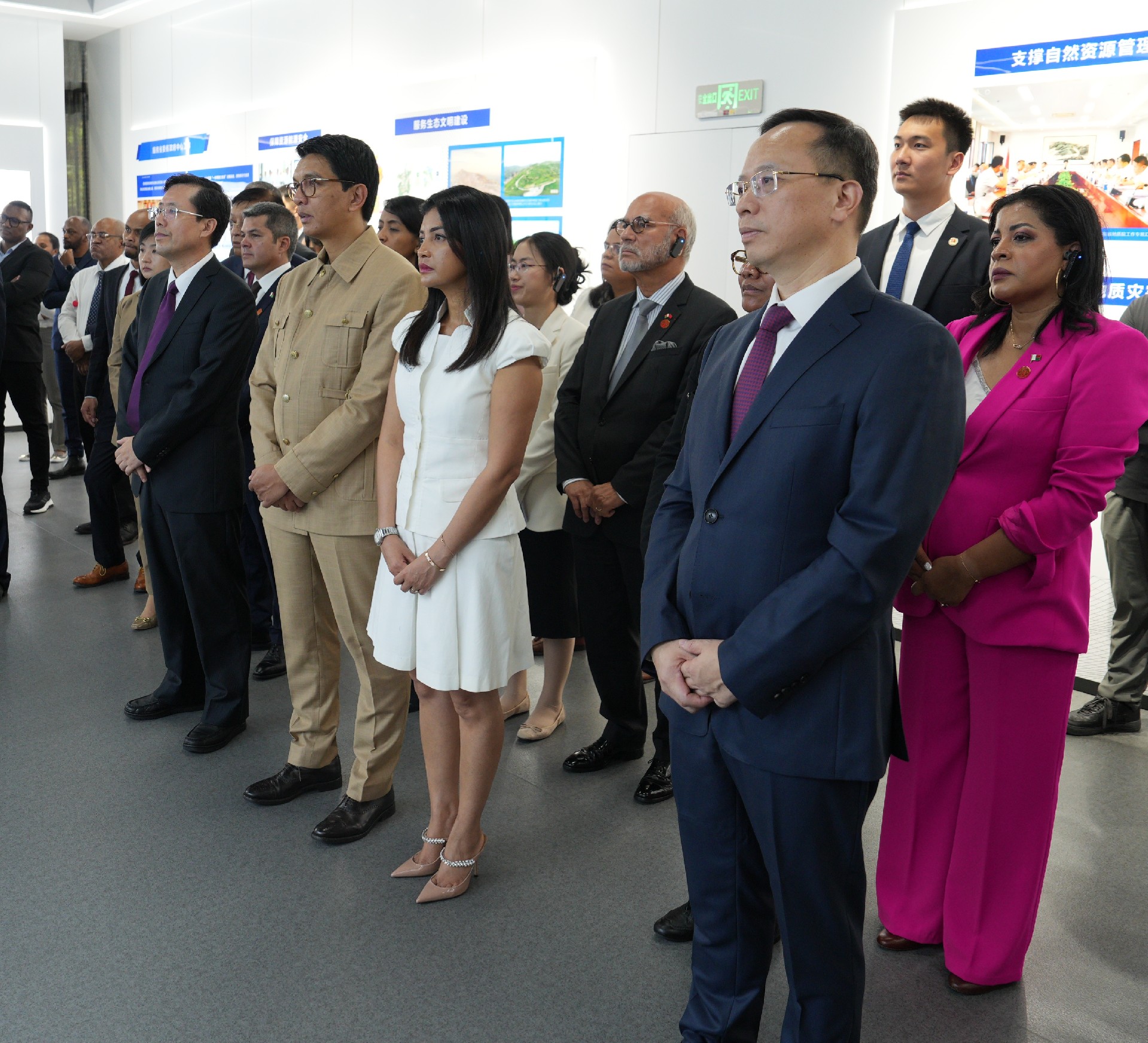 馬達(dá)加斯加外交部長(zhǎng)拉薩塔、教育部長(zhǎng)沙洪查里馬拉拉、工業(yè)和貿(mào)易部長(zhǎng)拉蘭博菲林加、馬達(dá)加斯加駐華大使羅班松,中國(guó)駐馬達(dá)加斯加大使季平、湖南省人民政府副省長(zhǎng)、公安廳廳長(zhǎng)王一鷗出席捐贈(zèng)儀式,省地質(zhì)院黨委書(shū)記談文勝等相關(guān)單位負(fù)責(zé)人參加。“中非友好,跨越山海”的美好愿景在湖南省地質(zhì)院熠熠生輝。
