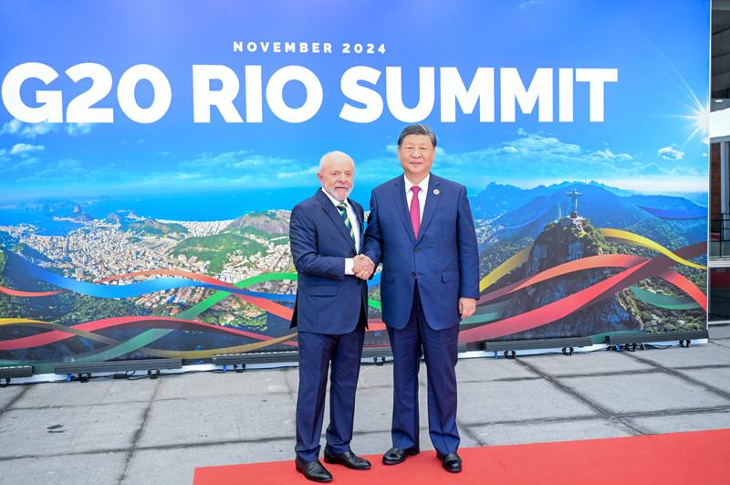 習(xí)近平指出,當(dāng)今世界百年變局加速演進(jìn),人類發(fā)展面臨的機(jī)遇和挑戰(zhàn)前所未有。作為世界主要大國領(lǐng)導(dǎo)人,我們應(yīng)該不畏浮云遮望眼,秉持命運(yùn)共同體意識(shí),扛起歷史責(zé)任,展現(xiàn)歷史主動(dòng),推動(dòng)歷史進(jìn)步。中國主辦二十國集團(tuán)領(lǐng)導(dǎo)人杭州峰會(huì)時(shí),首次將發(fā)展議題放到宏觀經(jīng)濟(jì)政策協(xié)調(diào)的中心位置,這次里約熱內(nèi)盧峰會(huì)把“構(gòu)建公正的世界和可持續(xù)的星球”作為主題,并決定成立“抗擊饑餓與貧困全球聯(lián)盟”。從杭州到里約熱內(nèi)盧,我們都致力于同一個(gè)目標(biāo),即建設(shè)一個(gè)共同發(fā)展的公正世界。