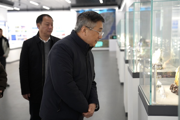 學(xué)術(shù)報(bào)告會(huì)前,王焰新還參觀了湖南地質(zhì)展廳,了解了湖南地質(zhì)70余年來(lái)的主要成就與發(fā)展歷程。