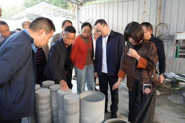在湖南東盛冰磧巖科技有限公司,調(diào)研組實地觀摩了冰磧巖產(chǎn)品生產(chǎn)線,詳細了解石雕茶具等系列產(chǎn)品的工藝特點與市場推廣情況。