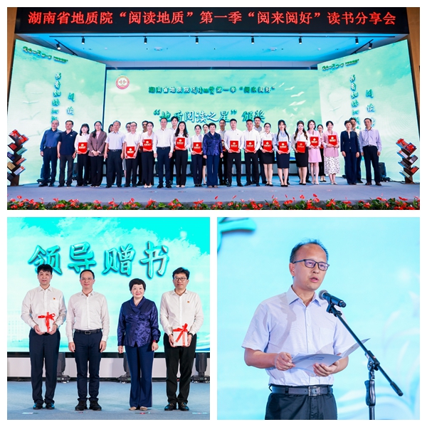 院黨委書記談文勝、院長張皓出席并為院屬單位代表贈書。在家院領(lǐng)導(dǎo)為院屬各單位讀書協(xié)會推薦的首屆“地質(zhì)閱讀之星”頒獎。省財(cái)政廳資環(huán)處處長劉見受邀到場作精彩分享并共同頒獎。