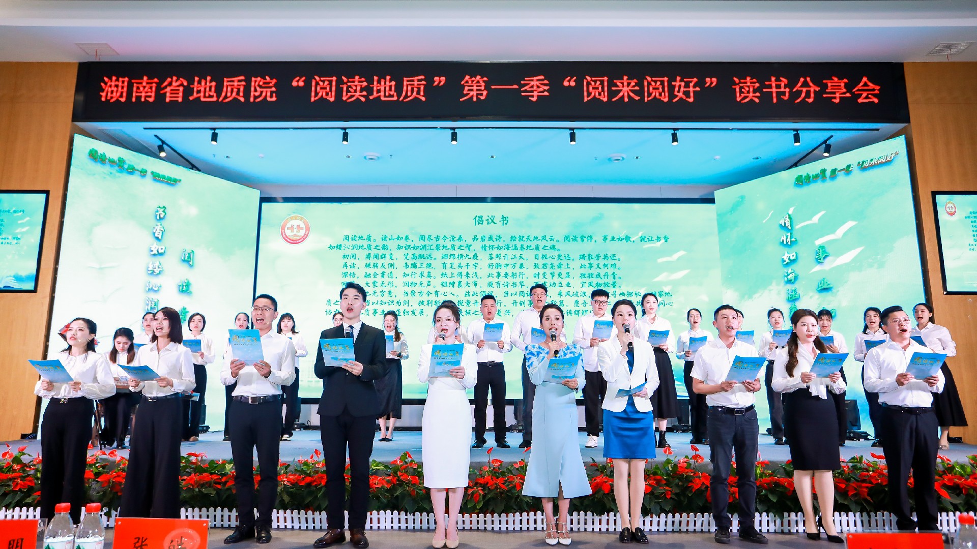 在“書香潤初心”“篤行更奮進(jìn)”“悅讀養(yǎng)廉心”三個分享篇章中,來自院屬單位的40余名代表,結(jié)合視頻照片、背景音樂、情景演繹等進(jìn)行讀書分享和經(jīng)典誦讀,高潮迭起,觸動人心?!犊蓯鄣闹袊贰逗L幕馈贰短綄ご蟮氐淖阚E》《鄧稼先傳》《傾情山野家書為伴》《地質(zhì)精神永流傳》……一部部紅色經(jīng)典、一封封滿含家國情懷的紅色家書、一個個感人至深的湖南地質(zhì)故事,引發(fā)強(qiáng)烈共鳴,令人潸然淚下,扣動了線上線下無數(shù)人的心弦。