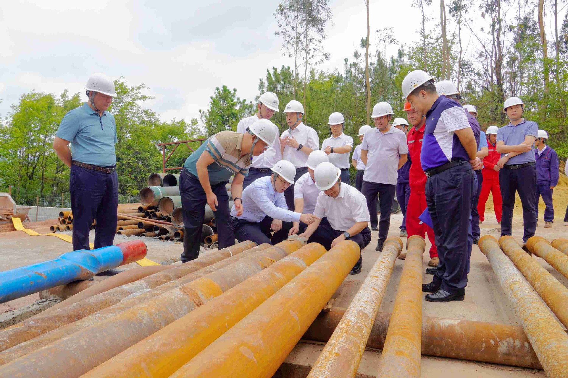 調(diào)研期間,談文勝一行在云南能源投資股份有限公司黨委委員、董事長周滿富的陪同下,實(shí)地調(diào)研了院屬單位湖南省地災(zāi)所湘南鉆井公司實(shí)施的能投股份昆明鹽礦空氣儲(chǔ)能項(xiàng)目,詳細(xì)了解項(xiàng)目施工進(jìn)度、技術(shù)應(yīng)用、基層黨建、安全生產(chǎn)等情況。他對(duì)省地災(zāi)所在引領(lǐng)新型儲(chǔ)能賽道上開新局,在加快培育新質(zhì)生產(chǎn)力上謀新篇的做法給予了充分肯定,對(duì)項(xiàng)目組精細(xì)化管理、標(biāo)準(zhǔn)化建設(shè)、常態(tài)化推進(jìn)安全生產(chǎn),高質(zhì)高效推進(jìn)項(xiàng)目建設(shè)給予了肯定。談文勝還看望慰問了奮戰(zhàn)一線的職工,查看住宿、食堂、黨員活動(dòng)室等環(huán)境,與他們親切交流,仔細(xì)詢問生活情況,了解思想動(dòng)態(tài)等事宜,對(duì)他們?yōu)榈刭|(zhì)院高質(zhì)量發(fā)展所付出的努力和作出的貢獻(xiàn)表示衷心感謝。