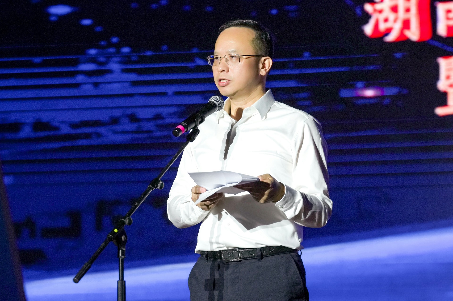 院黨委書記談文勝在致辭中表示,本次展演旨在紀念原子彈爆炸六十周年的熱血征程,謳歌薪火傳承的民族精神,緬懷地質(zhì)前輩的卓越功勛,也標志著首屆“湖南地質(zhì)文化周”正式拉開序幕。他指出,我們要賡續(xù)文化血脈。地質(zhì)工作者留下了“三光榮”“四特別”的精神內(nèi)核,要感悟他們堅定不移的執(zhí)著,聆聽他們戰(zhàn)天斗地的豪邁,追隨他們舍己為公的奉獻,昂首邁步湖南地質(zhì)高質(zhì)量發(fā)展新征程。我們要扎牢文化紐帶。地質(zhì)文化是鐫刻在地質(zhì)人心中的精神印記,要以鮮活的故事、生動的語言、多彩的符號,讓全院上下擰成一股繩、聚成一束光、融成一塊金,共同鑄就新時代湖南地質(zhì)的不朽傳奇。我們要堅定文化自信。地質(zhì)工作是探索未知、揭示真理的偉大征程,要進一步增強全院干部職工對地質(zhì)工作的認同感、歸屬感和榮譽感,激揚地質(zhì)人砥礪前行的昂揚斗志與輝煌未來。我們要厚植文化生態(tài)。要以文育人、以文促行、以文強院,把文化建設(shè)滲透到改革轉(zhuǎn)型發(fā)展各方面,融入到“一體兩翼三支撐”戰(zhàn)略全過程,共同演奏湖南地質(zhì)壯美樂章。同時,他祝愿本次“湖南地質(zhì)文化周”圓滿順利,祝福湖南地質(zhì)院的明天更加美好!