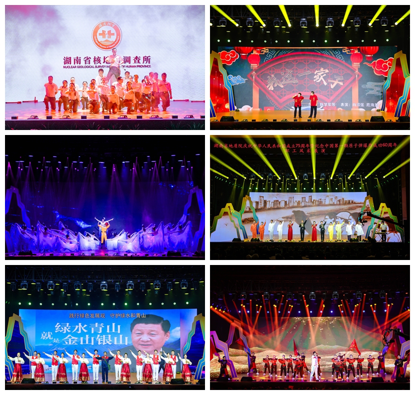 文藝展演以“光榮屬于新時代地質(zhì)筑夢人”為主題,分為“青山不墨千秋畫”“乘風破浪會有時”“看似尋常最奇崛”“而今邁步從頭越”四個篇章。院機關(guān)、院屬15家事業(yè)單位、院管企業(yè)演出人員悉數(shù)登場,將歌舞、相聲、話劇、朗誦等多種藝術(shù)形式匯聚成19個節(jié)目,共同彰顯了地勘單位職工的精神風貌和愛國情懷?!兜刭|(zhì)繪山河》《地質(zhì)光榮 奮斗有我》《羅布泊的回響》《礦世之約》《以迅應汛》《探銻報國的現(xiàn)代傳奇》情景重現(xiàn),一遍遍帶觀眾身臨其境地感受了湖南地質(zhì)人不畏艱險的意志品質(zhì);《紅旗頌》《我和我的祖國 勘探隊員之歌》《守護》《未來已來》《飛天·奮進者之歌》《測繪之光·智繪未來》美輪美奐,一場場視覺盛宴呈現(xiàn)在觀眾眼前;《親親常德待客來》《“筑”福祖國》《我這一家子》《核的力量》《地質(zhì)湘軍群英繪》《山河圖·踏夢行》《沁園春·雪》別具一格,一次次點燃了現(xiàn)場觀眾的似火熱情。最終,經(jīng)過現(xiàn)場與場外雙通道的投票,核地質(zhì)所榮獲“最佳風采獎”,地災所、地信所、物化所榮獲“最佳人氣獎”,空間所、水環(huán)所、資源所、核應用中心、院機關(guān)榮獲“最佳創(chuàng)意獎”,測試中心、礦調(diào)所、生態(tài)所、工礦所、中南建設(shè)公司、地調(diào)所、城調(diào)所、遙感所榮獲“同心協(xié)作獎”。