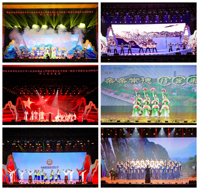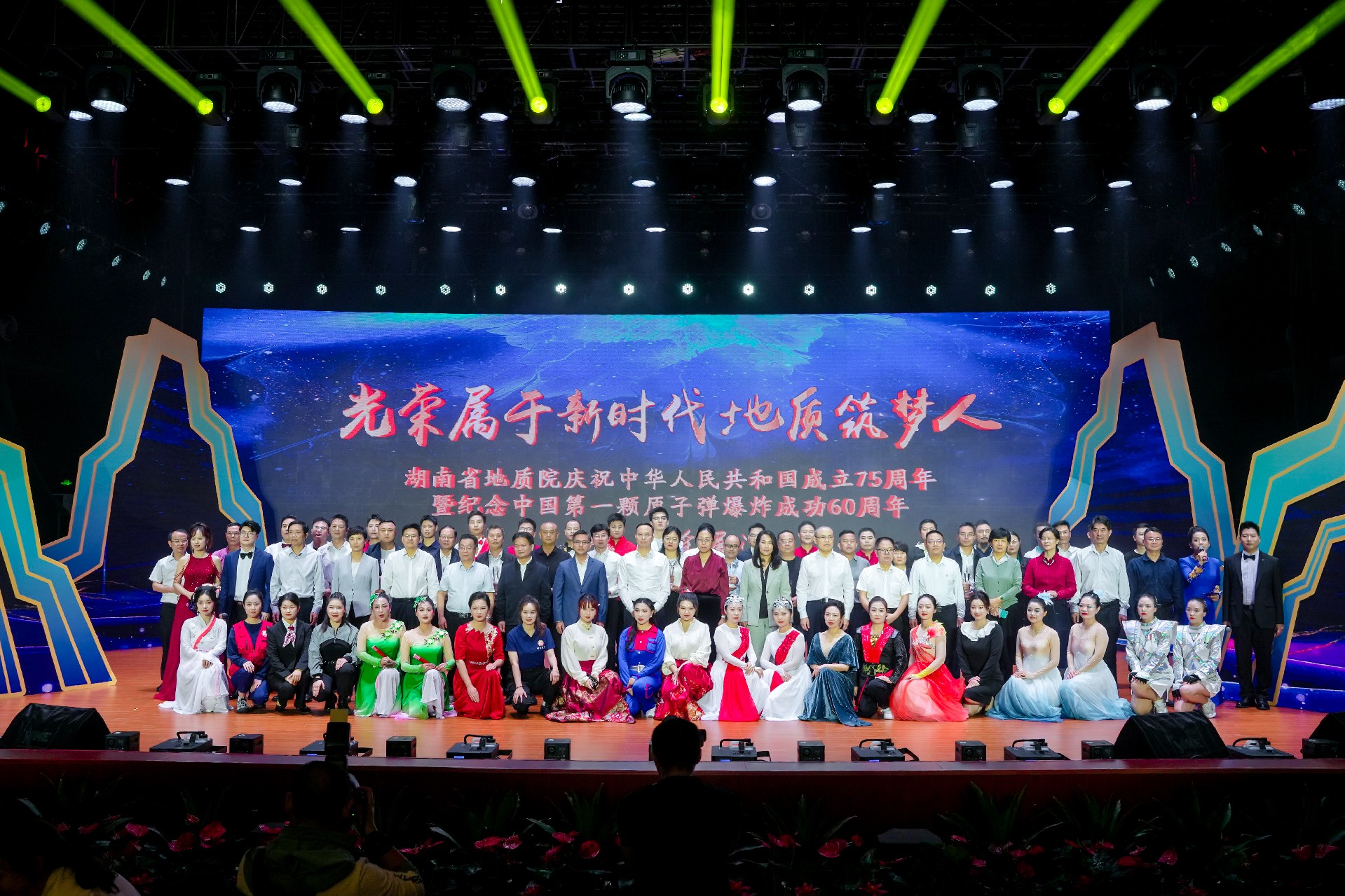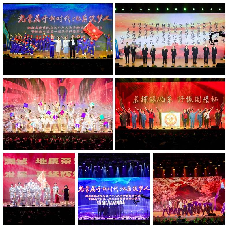 芙蓉國里盡朝暉,地質(zhì)院中文藝萃。10月16日,湖南省地質(zhì)院慶祝新中國成立75周年暨紀念第一顆原子彈爆炸60周年職工風采展演圓滿舉辦。本次展演亦為“湖南地質(zhì)文化周”啟動儀式,湖南地質(zhì)鈾礦勘探陳列館也于當日開館,湖南地質(zhì)文化甚濃,風景獨好。省地質(zhì)院黨委書記談文勝,省直機關(guān)工委委員、省直工會主席黎池,省自然資源廳黨組成員、副廳長李定橋,省總工會黨組成員、副主席劉再衡,長沙理工大學黨委副書記方瓊,團省委二級巡視員鄧資益,葉愛斌等省地質(zhì)院退休老領(lǐng)導,省財政廳、省紀委監(jiān)委駐省自然資源廳紀檢監(jiān)察組、湖南工人報社相關(guān)領(lǐng)導,以及省地質(zhì)院在家院領(lǐng)導出席展演活動。省部級勞模代表、職工代表1400余人共同觀看演出,“湖南地質(zhì)”微信視頻號同步直播,觀看人數(shù)達2.8萬人,點贊次數(shù)達15.4萬次,參與投票人數(shù)約1.2萬人。