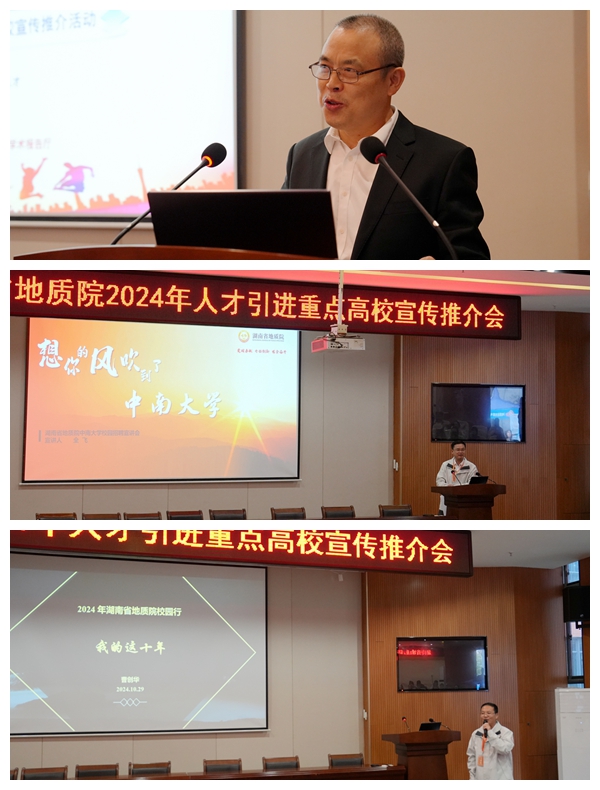 郭學(xué)益在致辭中介紹了中南大學(xué)歷史沿革、科學(xué)研究、人才培養(yǎng)、地球科學(xué)學(xué)科成果等情況,他指出,省地質(zhì)院作為地質(zhì)事業(yè)的中堅力量,為國家和湖南省自然資源管理、經(jīng)濟(jì)社會發(fā)展、生態(tài)文明建設(shè)等作出了重要貢獻(xiàn)。院、校有長期的合作和緊密的聯(lián)系,中南大學(xué)的學(xué)科優(yōu)勢與地質(zhì)事業(yè)發(fā)展需求高度契合,此次招聘活動是對學(xué)校相關(guān)學(xué)科建設(shè)和人才培養(yǎng)工作的高度認(rèn)可和有力支持。他號召廣大中南學(xué)子加入湖南地質(zhì)大家庭,實(shí)現(xiàn)人生夢想、創(chuàng)造美好未來,他希望院、校進(jìn)一步加大合作的深度和廣度,共建平臺、共育人才,共同推動地質(zhì)事業(yè)蓬勃發(fā)展。
