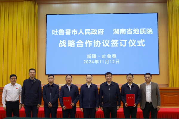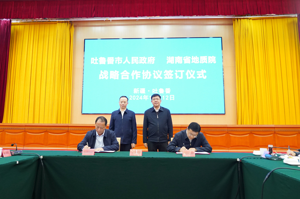 省地質(zhì)院相關(guān)部室及院屬單位負責人,吐魯番市自然資源局、市發(fā)改委、市工信廳、市財政局、市商務局、市國資委、市住建局、市生態(tài)環(huán)境局、市科技局、市應急管理局、市農(nóng)業(yè)農(nóng)村局、市文旅局、市林草局、市水利局、市衛(wèi)健委負責人共60余人參加簽約儀式。(轉(zhuǎn)載自湖南省地質(zhì)院官網(wǎng))